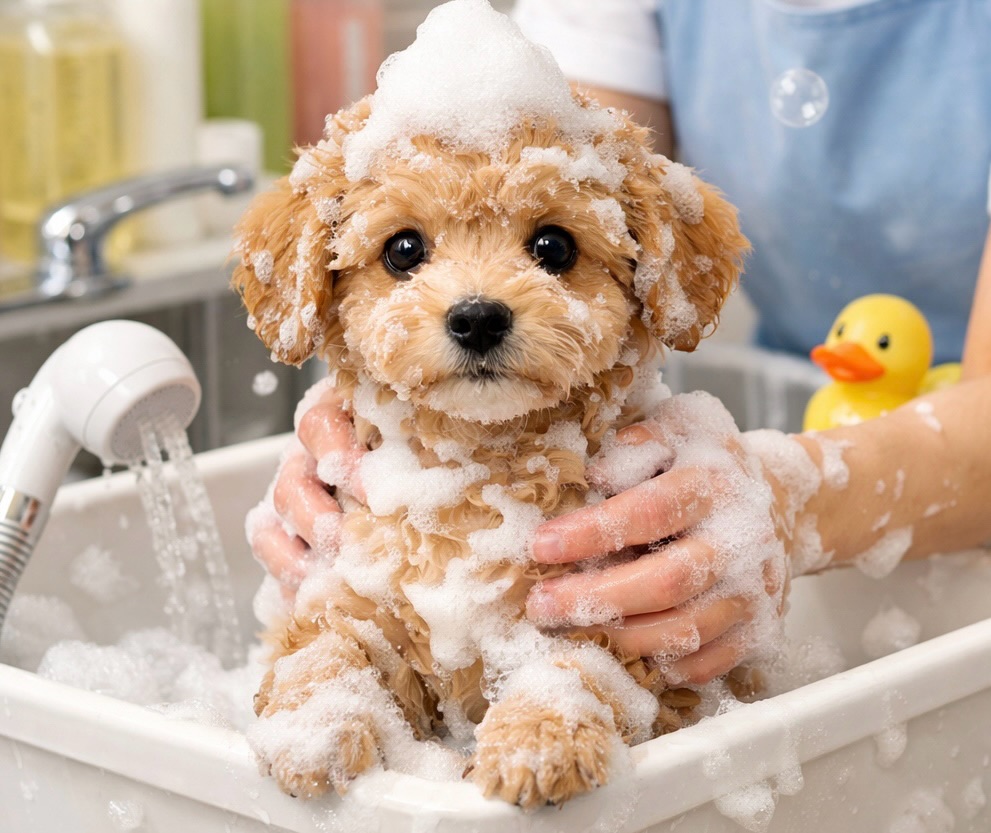 子犬のシャンプーは最初は大変に感じるかもしれません。